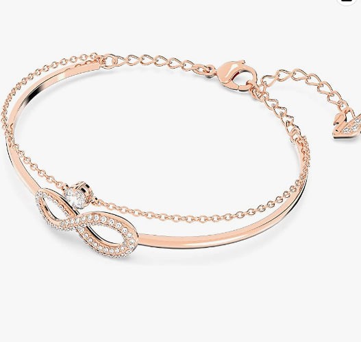 Item Shipping: 1 x Swarovski Infinity Women's Bracelet, White Swarovski Crystals and Rose Gold Finger Strap, 5.75 x 4.45 cm, Comes in Swarovski Bracelet Box